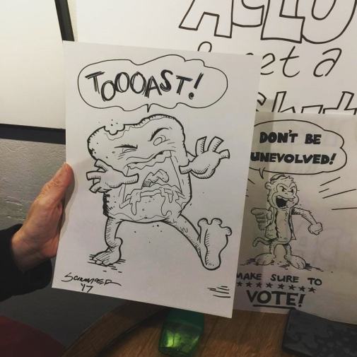 This past May I was also invited to provide the cover illustration for the underground punk rock literary magazine Paper and Ink. The 13th installment, Tales From The Bar Side, is brimming with yarns spun about the denizens of “dive bars, shitty pubs, and back alley boozers.” Publisher and editor-in-chief Martin Appleby believed I was the apposite choice to supply artwork. I can’t begin to fathom why. Nab yourself a copy of the May issue (as well as their entire catalog while you’re at it) by visiting their store at https://www.etsy.co/shop/PaperAndInkZine.